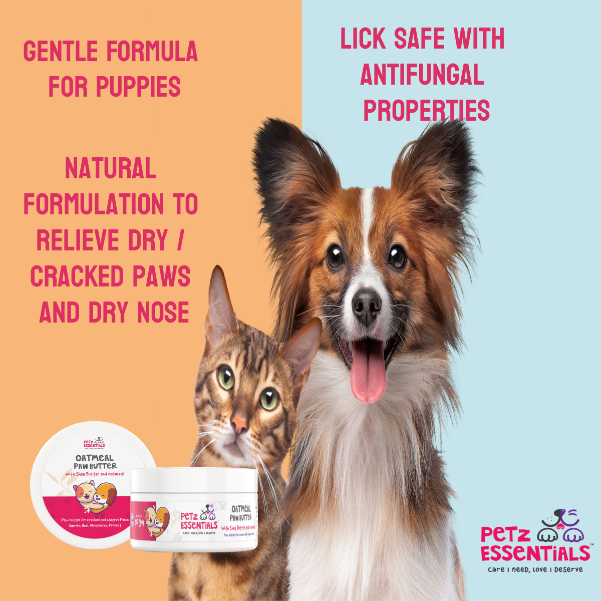 Petz Essentials Oatmeal Paw Butter is lick safe and gentle for paw babies. The product has handpicked ingredients such as Oatmeal, Shea Butter, Aloe Vera and Coconut Oil, supporting a natural healer for dry and cracked paws. It can also be used to relieve dry nose.